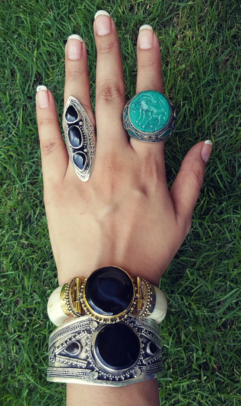 Black stone ring- Afghan jewelry- Saddle ring. Aqeeq statement ring.Ethnic Stone rings. Bohemian Afghan ring. Gypsy Nomadic Ring- Aqiq ring