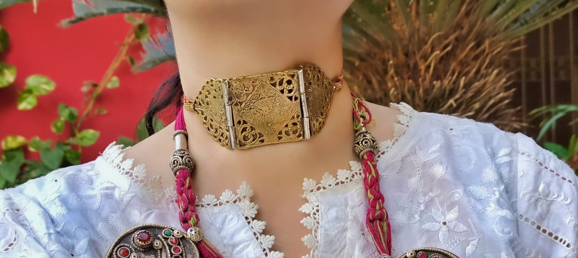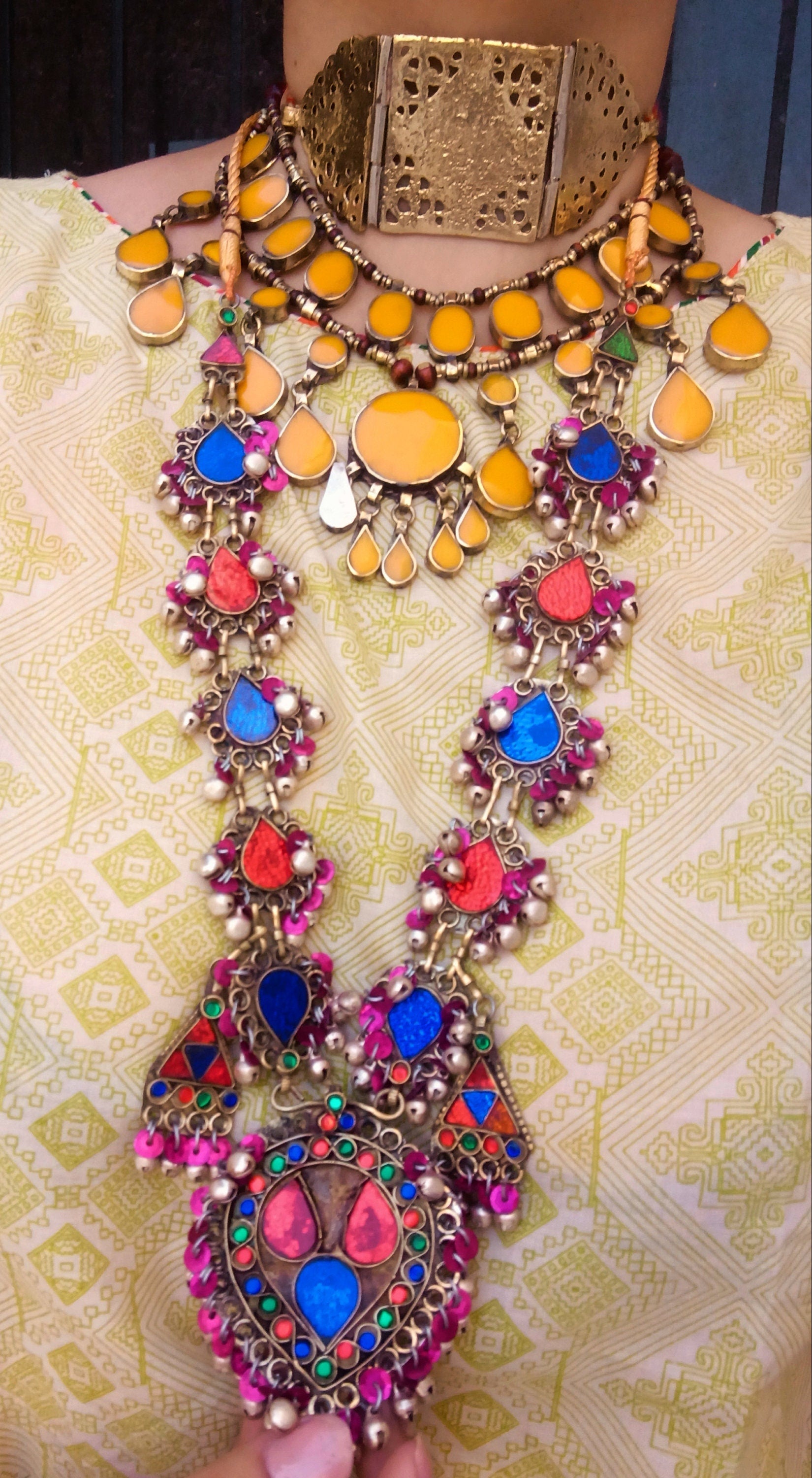 Gold choker necklace- Custom made bohemian necklace- One of a kind ethnic Pakistani necklace- Pakistani jewelry- Tribal statement necklace